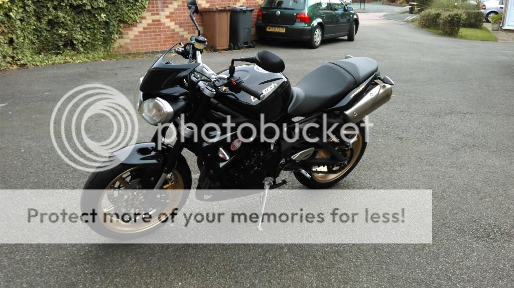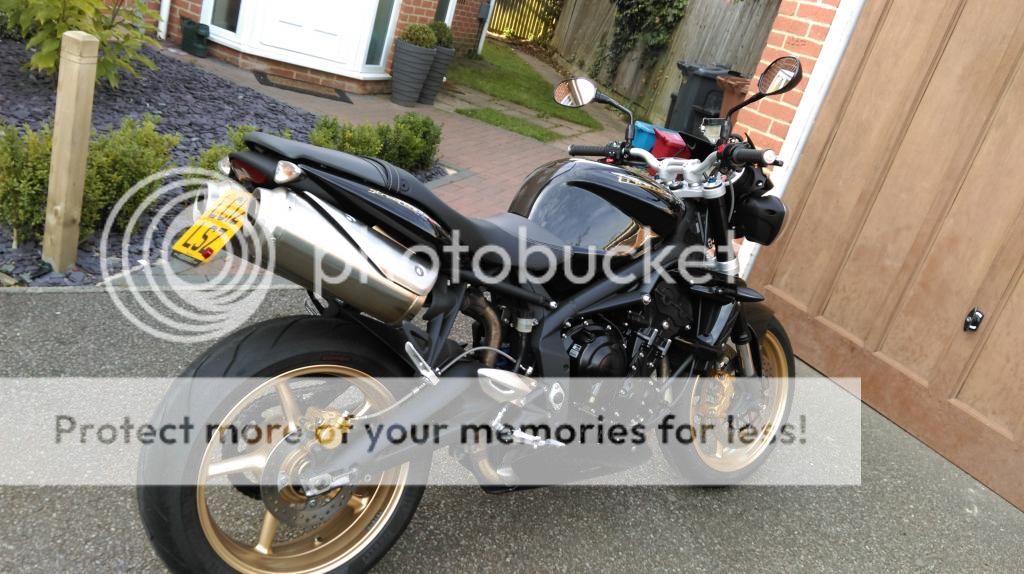 it is a 2012 street triple r in black with gold wheels, r+g tail tidy, belly pan and pazzo black/gold levers