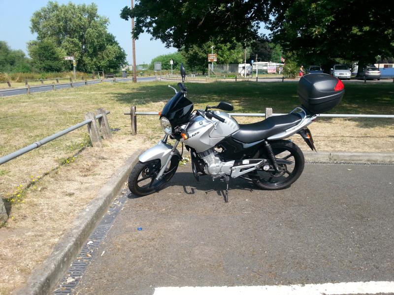 Hi and welcome. Your bike looks just like my YBR125, silver with the bikini fairing and a Givi box.