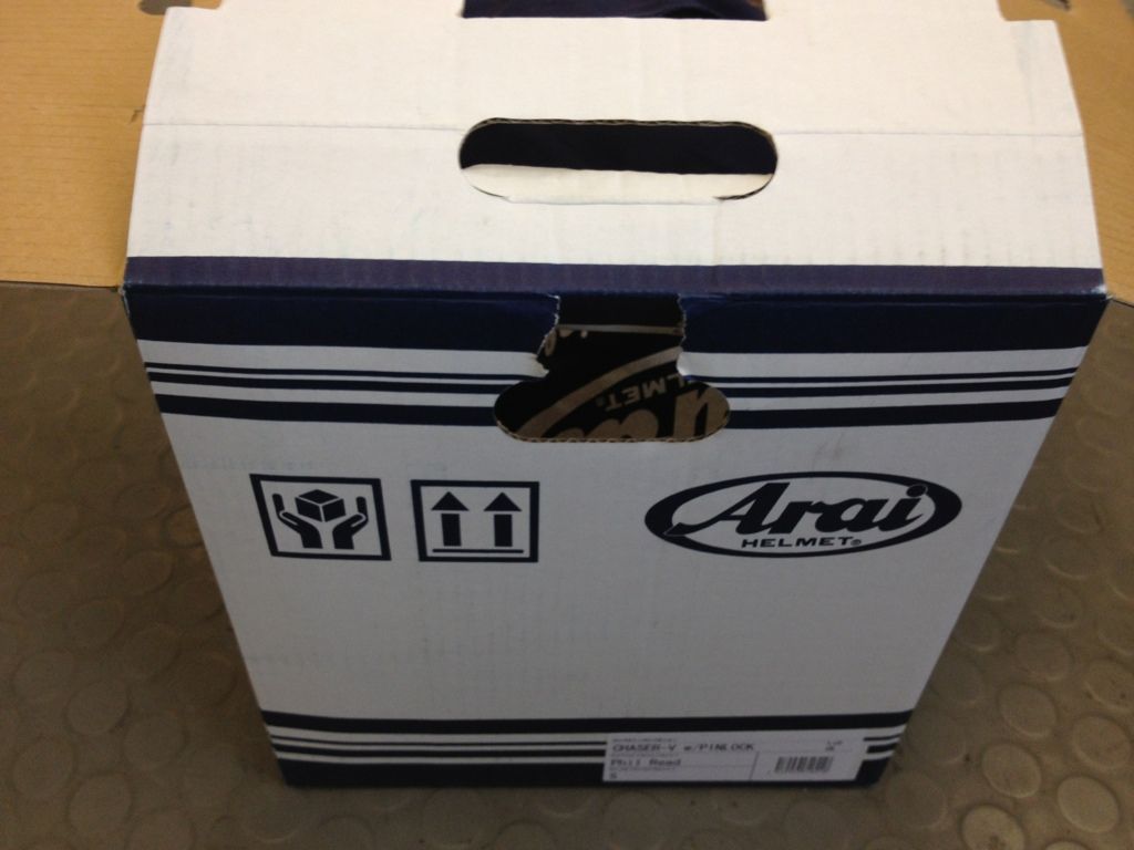 The outer cardboard box appears to have done it’s job, there appears to be no damage to the inner ‘Arai’ box. can’t see why you’d suspect the helmet to be damaged.