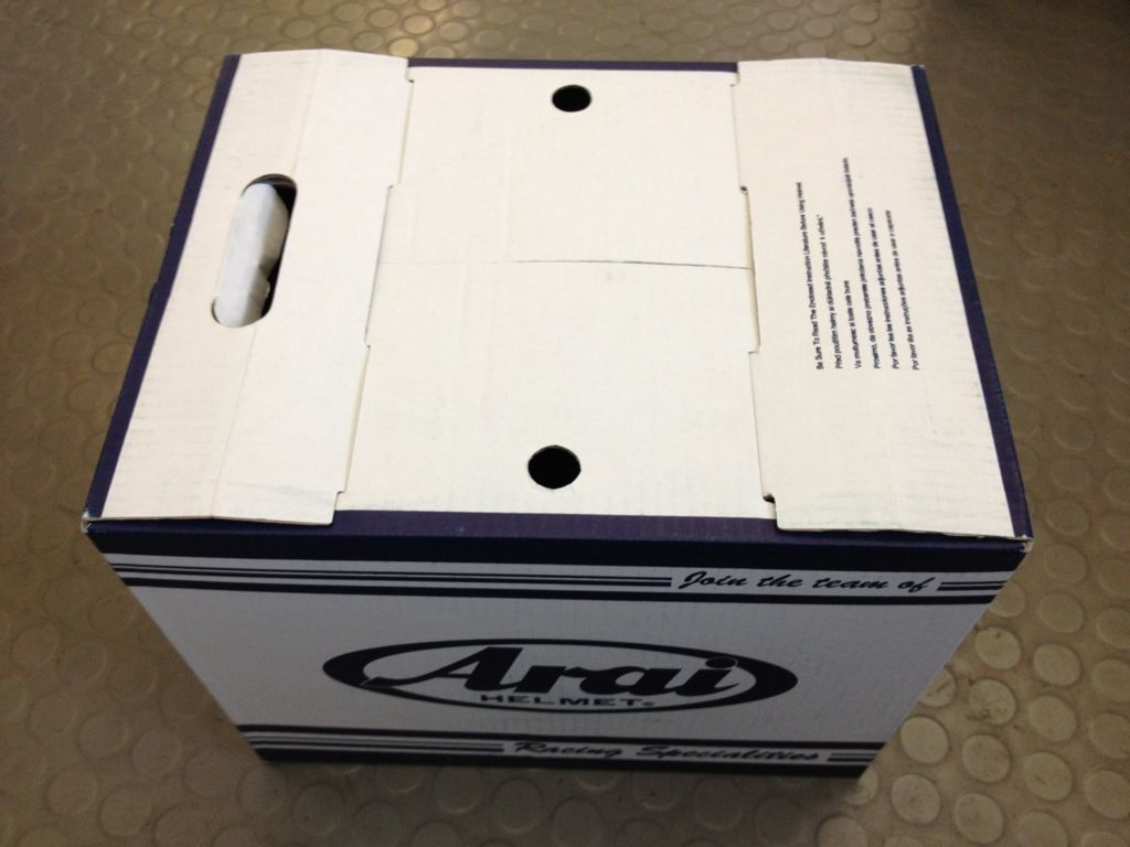 Anyway… I called the UK distribution company for Arai and spoke to them, sent some pics etc, and they were extremely helpful. They told me it would be fine seeing as the inner box has sustained only the most minimal amount of damage. They still advised me to complain to the shop I bought it off though and said I could exchange the helmet at any point in its lifetime if I wasn’t happy with the state of it.