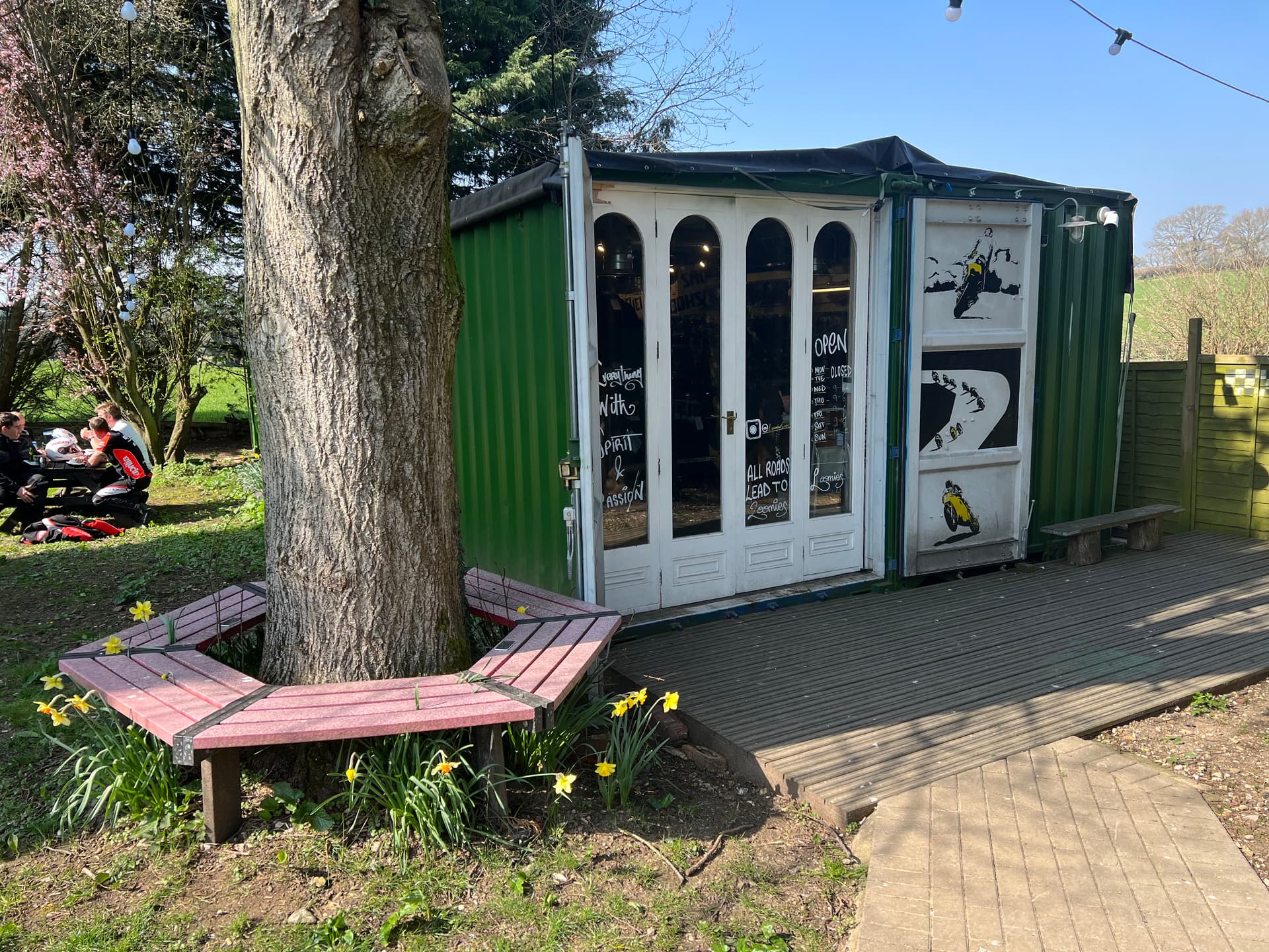 Great ride for the most part, until Calimoto took us down a farm lane. Riight… aborted that at the next crossroads, got to a junction, turned left to resume what I assumed was the right road we wanted, only to basically ride into Loomies Moto Cafe! Never been. Total fluke we found it. Stopped for lunch, had a nice time then hit the road again for the coast (wish we had nice venues like this nearer to London).