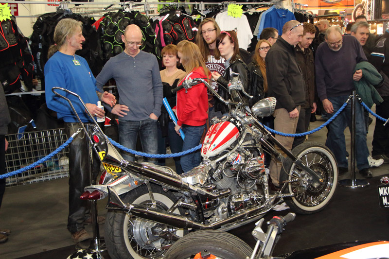Well I really enjoyed it. It did get a bit crowded by about 2.30pm so I had a late lunch sitting on the balcony of a nice cafe in the concourse area listening to a very good pianist, away from the crowds. By about 4pm it started to thin out quickly again so I had plenty of time to wander around looking at the very lovely bikes on display, especially the classics and customs. Had a long conversation with a bike builder called John, who built this magnificent specimen, he’s in the blue top on the left, a very nice guy…