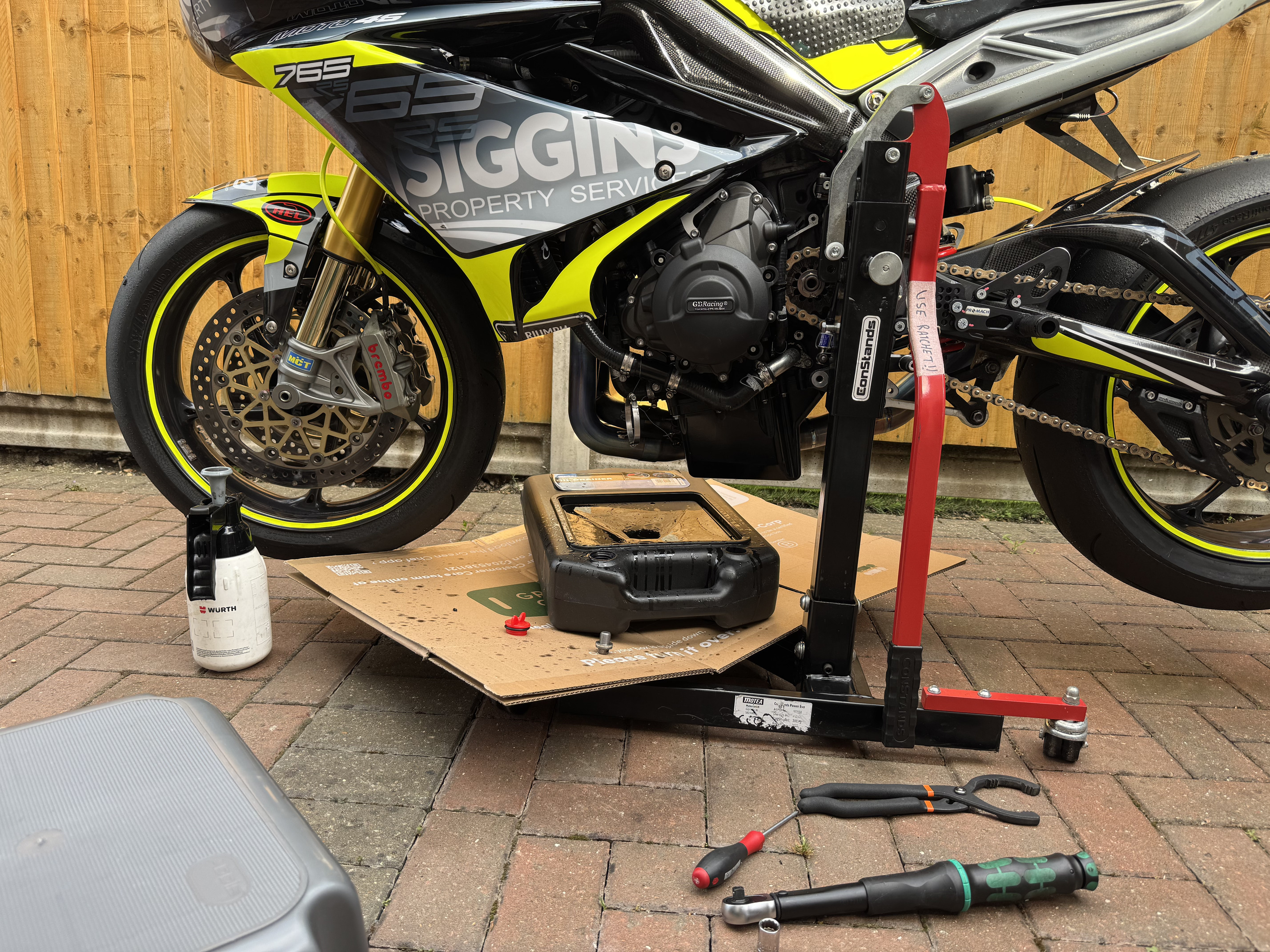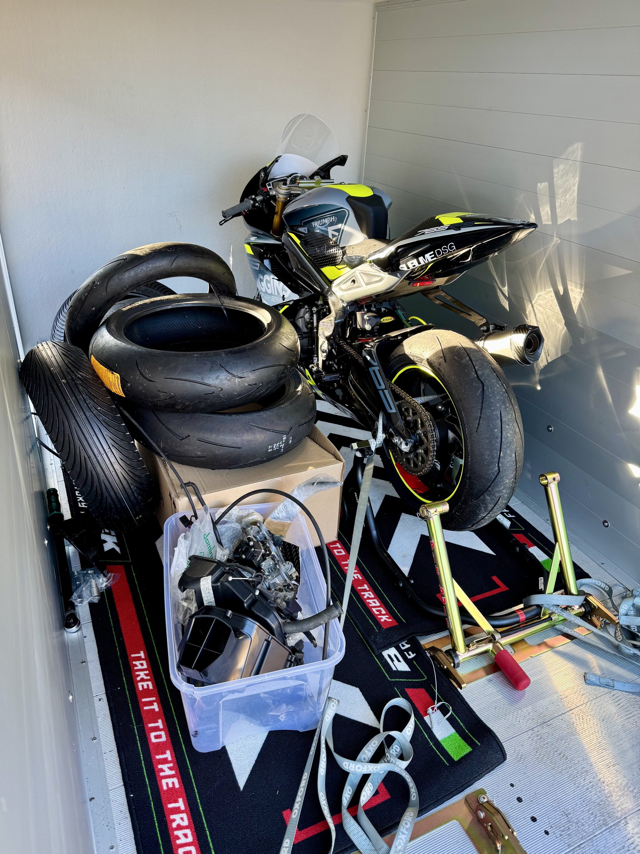 Arrived, liked what I saw and did a deal (which was 2.5x less than what it was going to cost me to build with a new 765 RS!) Got a complete package of spare parts, wets of wheels, an array of tyres and a box of 765RS parts I could use to take it to a full 765RS electrical spec if I wanted.