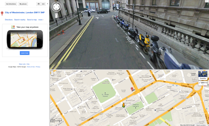 There’s two of these bays down this street. The only thing I’m thinking is that, given the possibly difficulties and general annoyance of trying to park exactly parallel to the curb, you may end up with said twatty scooterist parking at a slight angle across your front wheel, meaning you have to back the bike out before you can pull forward. Now, this road may not be too bad, but some of these smaller roads often have a pretty nasty camber at the sides that make wheeling my heavy-arse bike out backwards very difficult indeed.