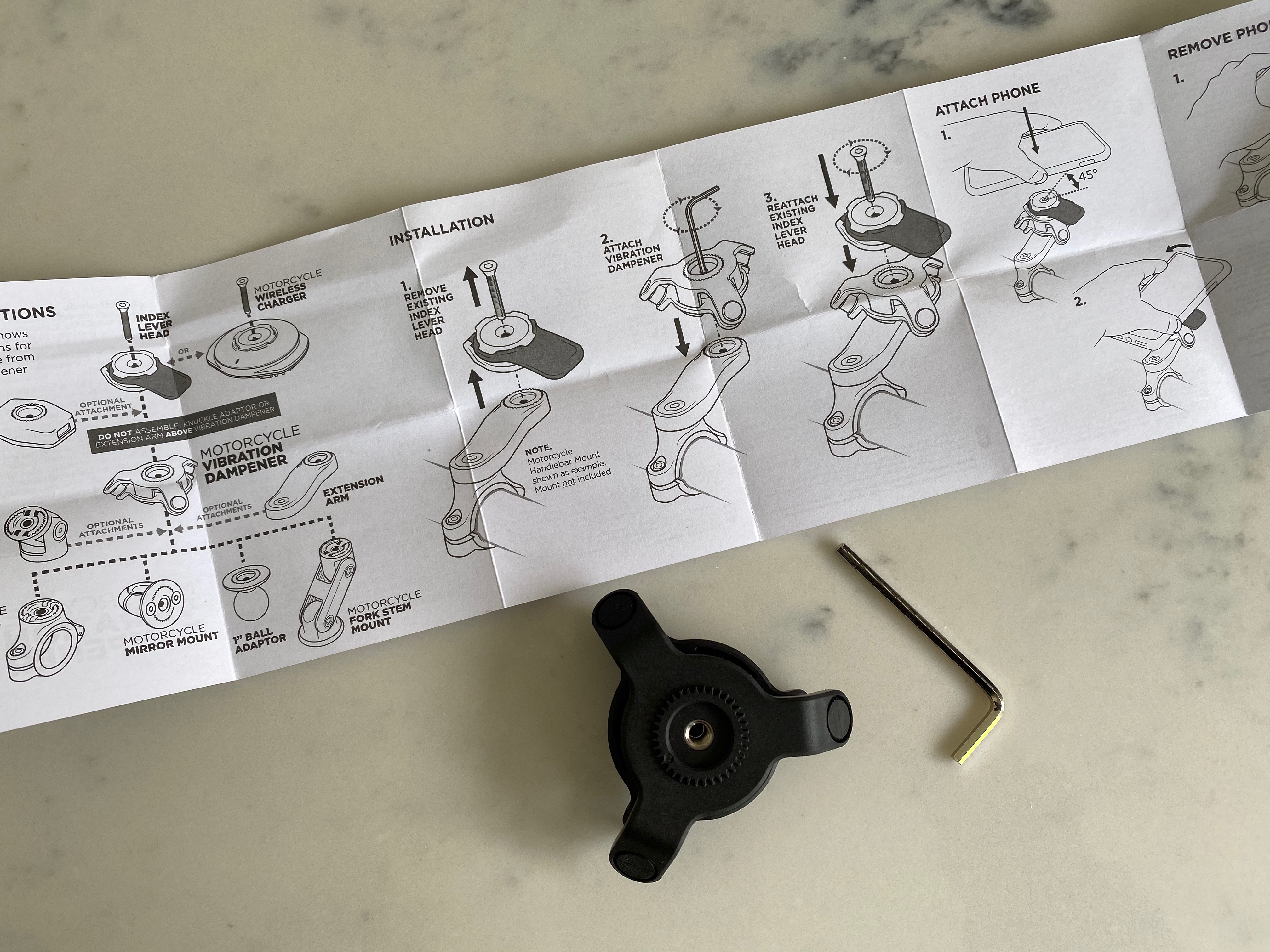 The vibration damper uses the standard notched circular mounting system so there’s a position you can lock the damper in every few degrees, so no I had no problem positioning it so it didn’t interfere with anything. The wireless charger was a different matter though, that does have to be positioned correctly so you can plug the wire in. I had no issue getting the right position though.