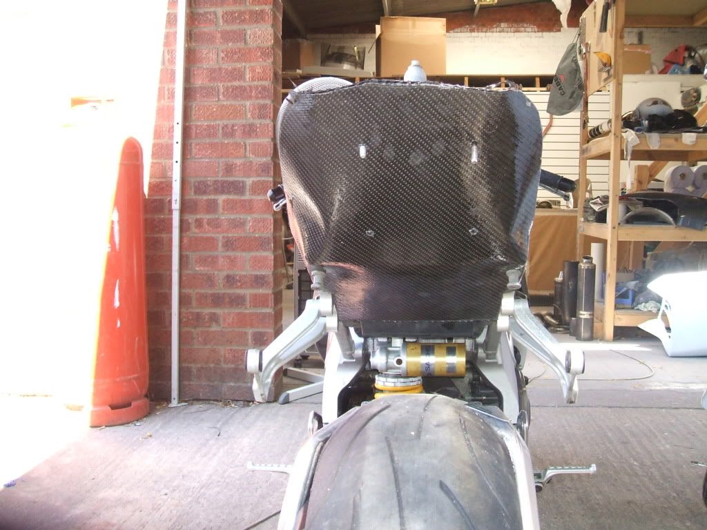Now the CF has cooled, its is more ridged. I start trimming back the excess material but leaving enough to over-lap inside the seat unit. I have done the tray so that the seat unit will slide over the tray from the rear. The slight tension in the tray will pull the seat unit and I could get away with using no fixings between the tray & seat unit.