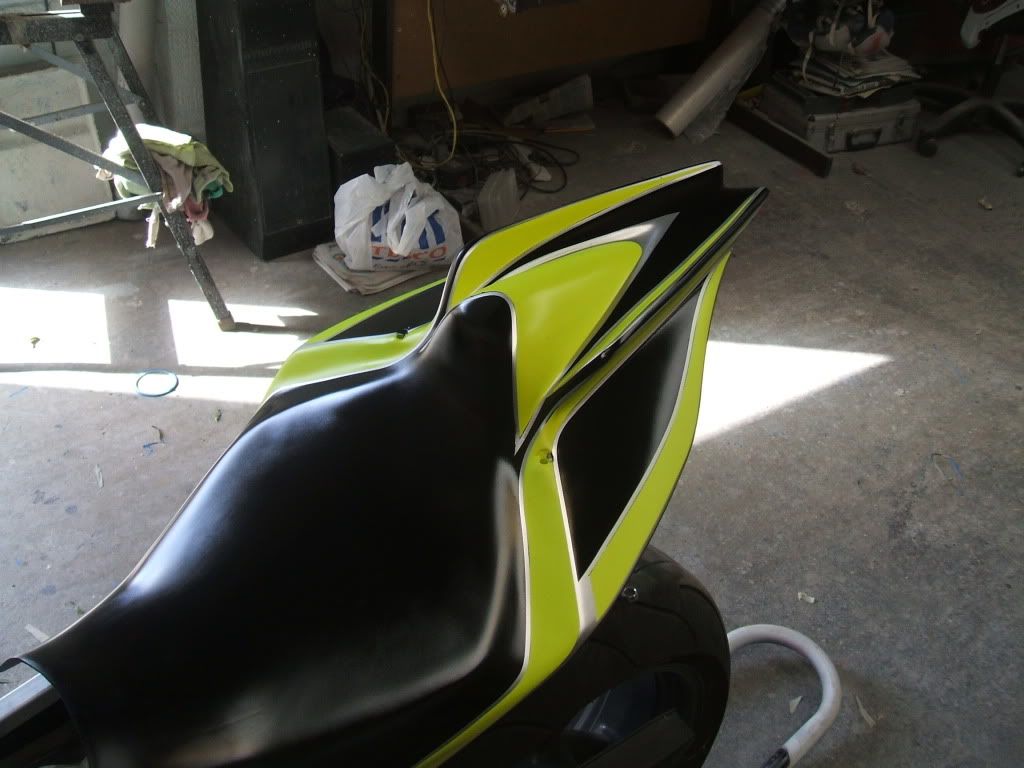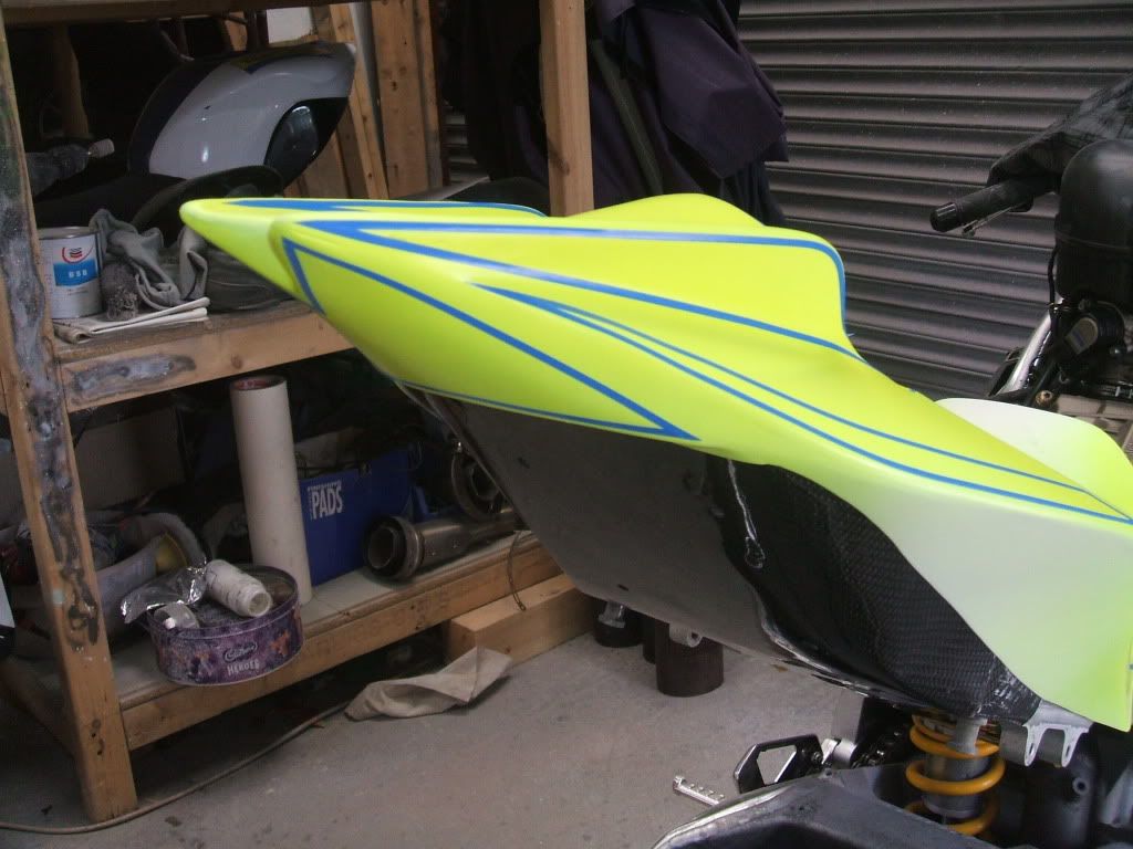 Finally… I have been able to make a start on the paint work. Got the paint done on the seat unit in the Team Phoenix Racing colours which I am still designing.