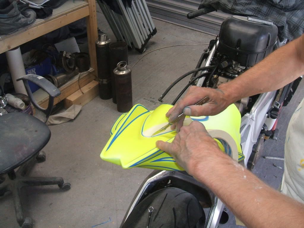 Tuesday 27th July 2010. Got a bit more done today. Got the decals from STG Graphix, so stuck them on. Lined out & sprayed the tank and just have to paint the silver pin stripes.