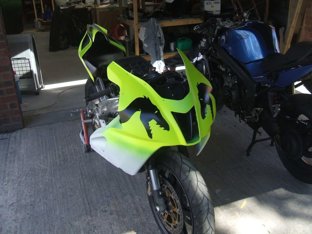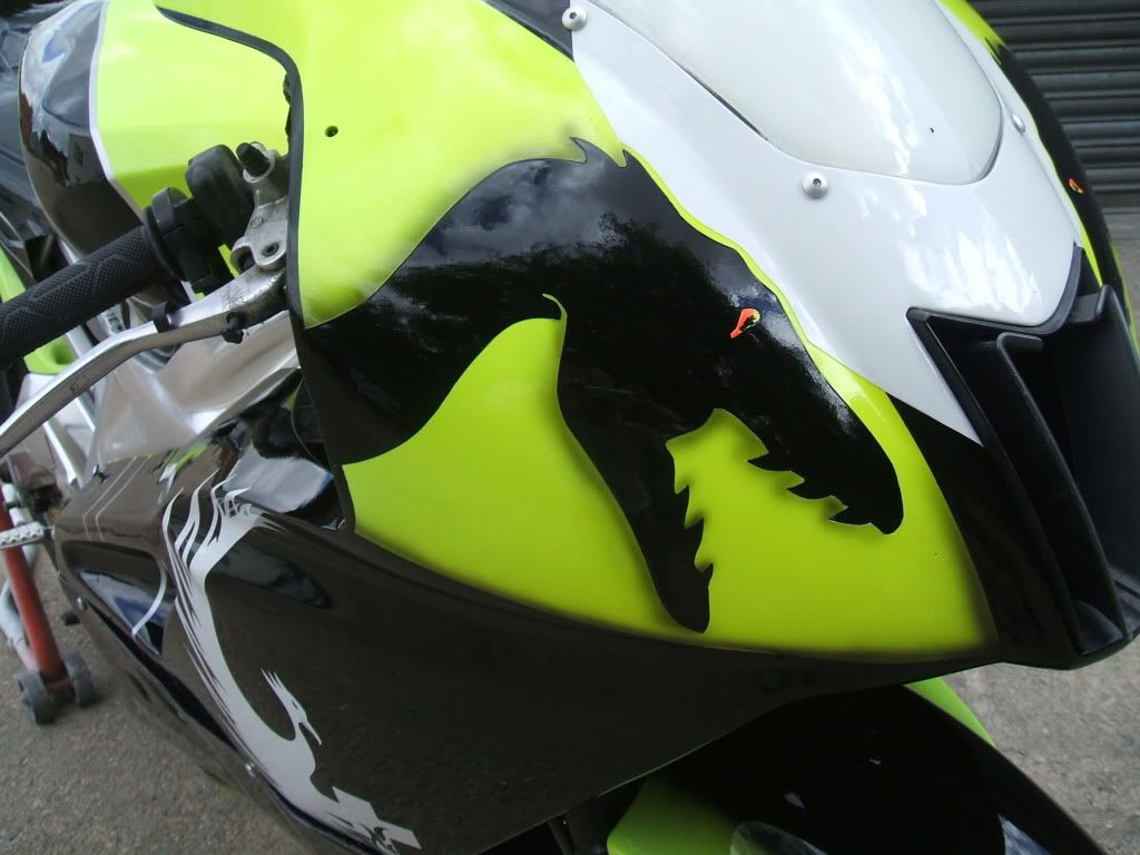 The paint work is complete inc. the lacquer. I have refitted the kit this morning and took it outdoors to get a few pic’s. I am very critical of all my work & not really one for blowing my own trumpet but on this occasion I am going to. I have been doing this stuff for many years but this one just blew me away when the clouds cleared & the sun lit up the paint work. The gold pearl in the black just jumped out, the silver just sparkled. As for the fluro yellow/green… I feel snow blind.