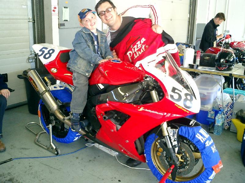 Here’s a pic of me & my son with my mates race bike when I was a Pizza delivery rider in the evenings and weekends trying to avoid getting the house repossesed.