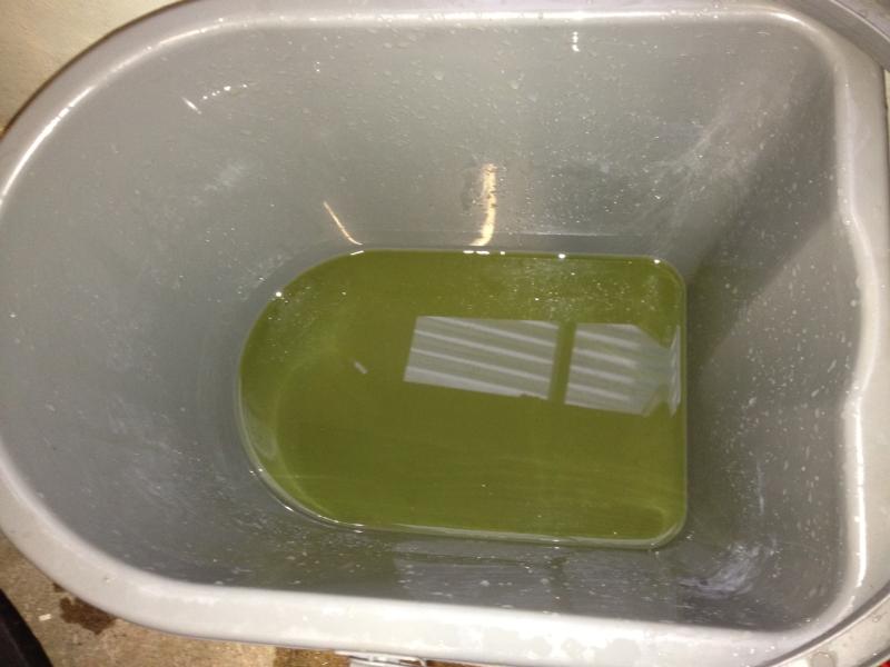 This is some of the coolant which was very dirty (its about 2 years and 6000 miles old) it had very fine particles in it, much finer than sand - clay sized, but it did settle out. This abrasive quality could have damaged the water pump seal.